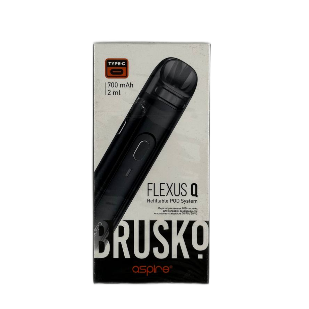 BRUSKO FLEXUS Q — это электронная сигарета со сменным испарительным элементом, регулируемой затяжкой, двойным режимом активации и регулируемыми уровнями мощности, созданная в коллаборации бренда BRUSKO и компании Aspire. Батарейных блок BRUSKO FLEXUS Q выполнен в стильной Q-образной форме из прочного цинкового сплава, оставаясь при этом лёгким всего 56г устройством, внутри которого высокотехнологичный чипсет Aspire ASP отвечает за аппаратную безопасность девайса. Картридж объёмом в 2 мл сделан из прочного аморфного PETG-пластика, тем самым защищая бак от протечек. Внутри картриджа расположен сменный испарительный элемент на сетке класса AF Mesh Coil, испаряющий жидкость с японского органического хлопка. В комплекте к BRUSKO FLEXUS Q идут два испарительных элемента: один — с сопротивлением 0,6 Ом, другой — с сопротивлением 1,0 Ом. Современный испарительный элемент на сетке обеспечивает точную и яркую вкусопередачу заправленной жидкости. Заправка картриджа осуществляется благодаря боковому отверстию, плотно закрытому силиконовой заглушкой. Входящий воздушный поток BRUSKO FLEXUS Q изменяется с помощью регулятора затяжки, расположенного на боковой стороне батарейного блока. Так, благодаря изменениям положения регулятора, можно добиться от электронной сигареты тугой MTL, или более свободной RDTL-затяжки. Система регулировки затяжки BRUSKO FLEXUS Q позволяет каждому настроить устройство под собственные желания. Двойной режим активации BRUSKO FLEXUS Q делает девайс ещё более удобным: устройство можно активировать как с помощью датчика затяжки, так и с помощью кнопки активации. Ёмкий аккумулятор на 700 мАч заряжается с помощью порта для зарядки USB Type-C, расположенного внизу устройства. При этом, благодаря технологии Q-quick, за 10 минут можно зарядить 80% от всего аккумулятора при использовании зарядного устройства с силой тока более 1,5 А. Трёхуровневая регулировка мощности девайса от 12 до 18 Вт позволяет выбрать оптимальный способ использования BRUSKO FLEXUS Q, а светодиодный индикатор покажет, какой именно уровень мощности установлен в данный момент. Рекомендуется использовать испарительный элемент с сопротивлением 1,0 Ом на мощности от 12 до 15 Вт, а испаритель с сопротивлением 0,6 Ом — на мощности от 15 до 18 Вт. Это поможет увеличить срок службы испарительного элемента, который в любом случае всегда можно заменить на новый, не меняя самого картриджа.