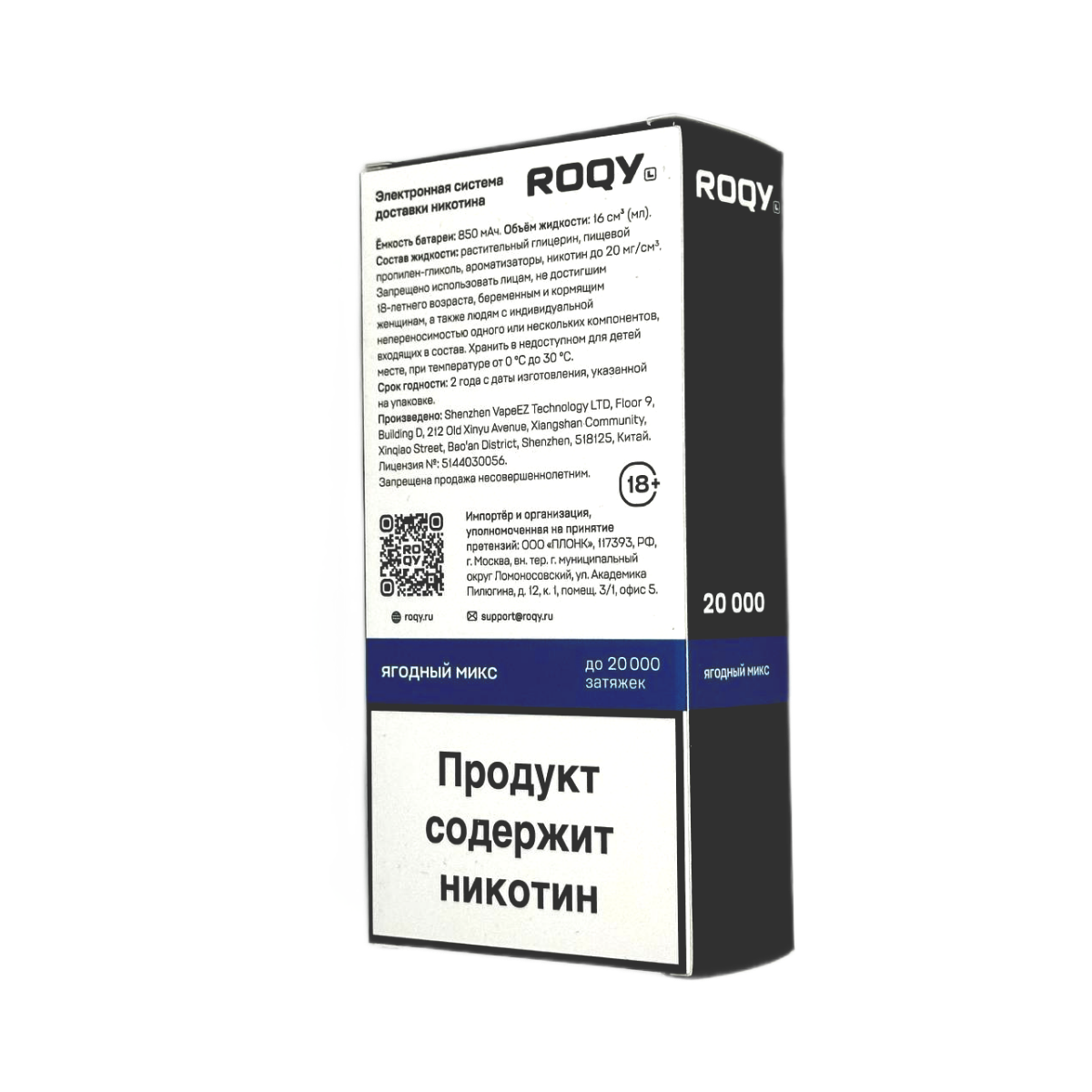- Кол-во никотина 20 мг/мл